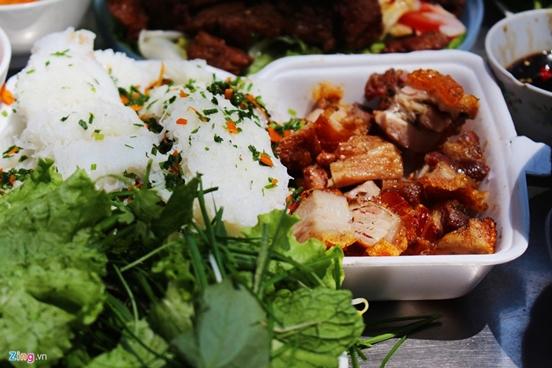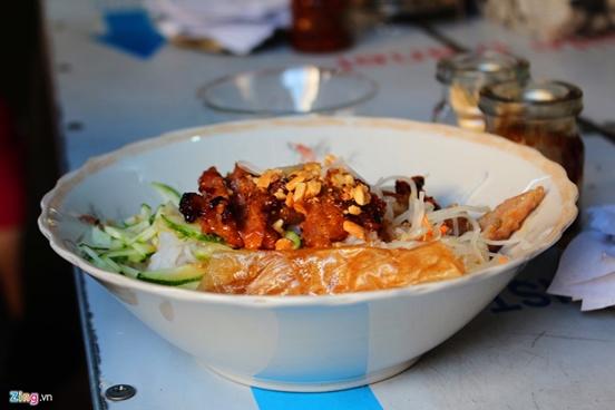 than ăn kèm các loại rau sống và nước mắm chua ngọt. Một tô bún nem nướng có giá 20.000 đồng.