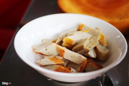 cá kho, xoài xanh bằm nhuyễn. Món này có giá 10.000 đồng một đĩa.