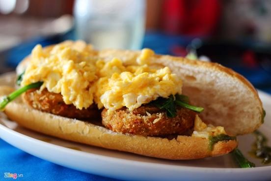 Bánh ghẹ chiên giòn thường được dọn kèm bánh mì, trứng ốp lết. Món bánh này được làm từ thịt ghẹ,