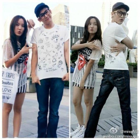 Ngày hôm qua, Jia (MissA) đã đăng lên trang Weibo cá nhân của cô nàng bức ảnh chụp cùng Nichkhun (2PM) với dòng trích dẫn “Lại thêm một người nữa giúp tôi quảng cáo chiếc áo do tôi tự thiết kế. Cám ơn Nichkhun nhé. Đây là lần đầu tiên tôi thấy một người đàn ông mặc chiếc áo này đấy. Thật là hạnh phúc.”