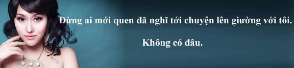 Đặc biệt, trong bài phỏng vấn người đẹp họ Nguyễn bất ngờ nhắc đến vấn đề nhạy cảm. Cô khẳng định những người mới quen đừng nghĩ tới chuyện lên giường với cô để "thử tôi ra sao".