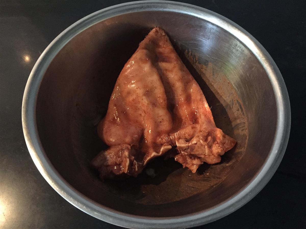 Ướp tai với các gia vị bên trên ( nước dừa để lại không ướp cùng) trong 1h cho ngấm gia vị.