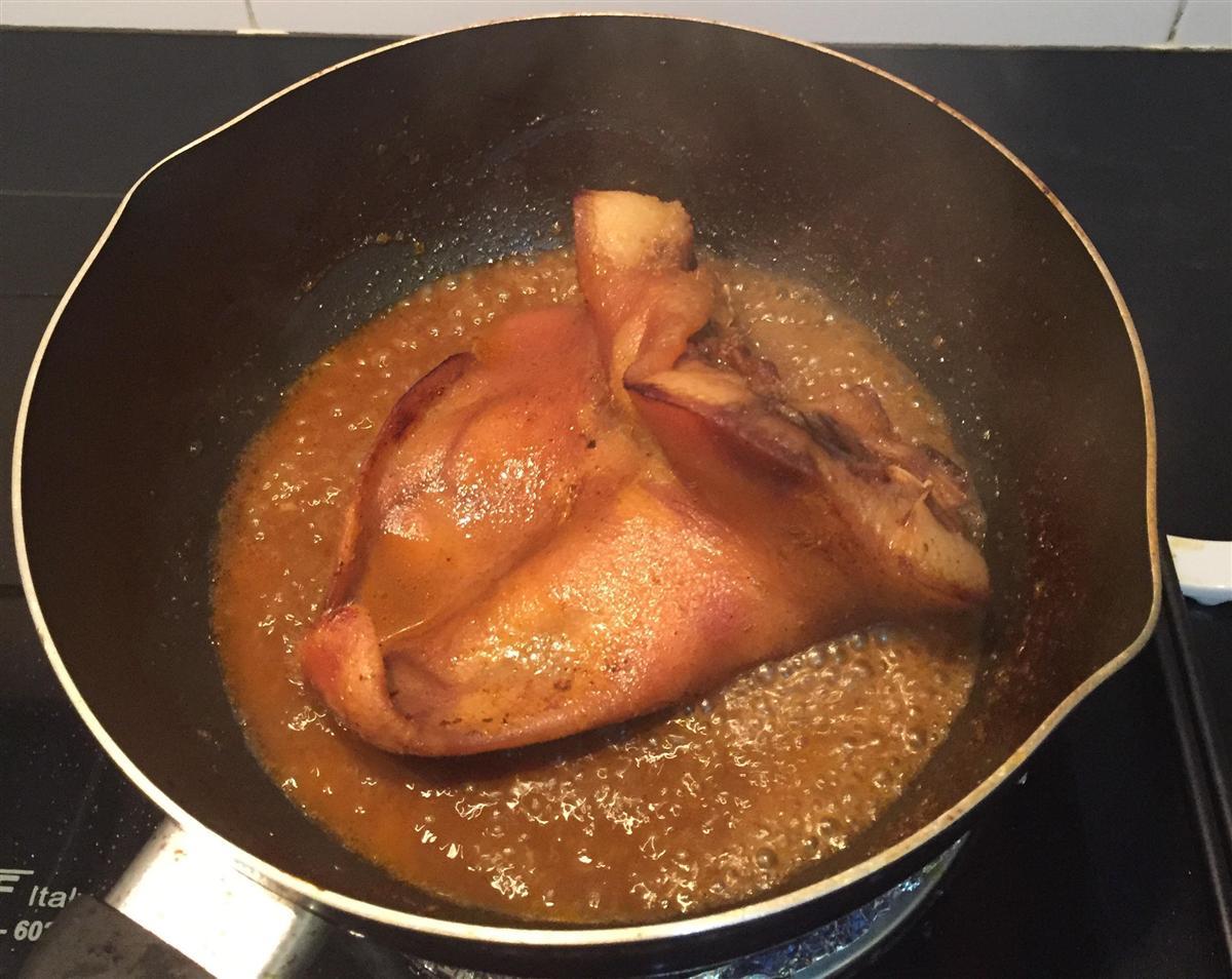 Áp chảo qua 2 mặt cho vàng rồi thêm nước dừa vào om, để lửa vừa đủ không quá to, đến khi nước cạn là được.