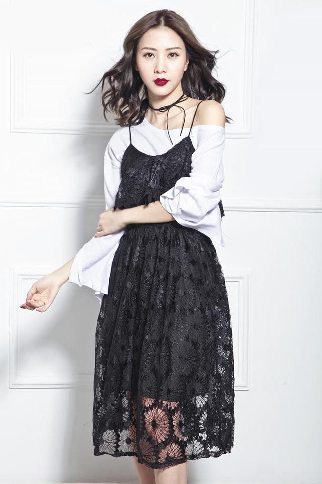 Xu hướng thời trang 2016 được nhiều cô nàng yêu thích là sự xuất hiện của áo hai dây điệu đà, kiểu áo nãy có từ rất lâu nhưng cách mix & match diện bên ngoài áo thun, sơ mi lại khá mới mẻ. Nếu Vũ Ngọc Châm chuộng váy hai dây chất liệu ren, denim mix cùng áo tay chuông lạ mắt, thì Hải Tú lại chọn áo phông basic giản đơn diện cùng váy hai dây gam màu trung tính.