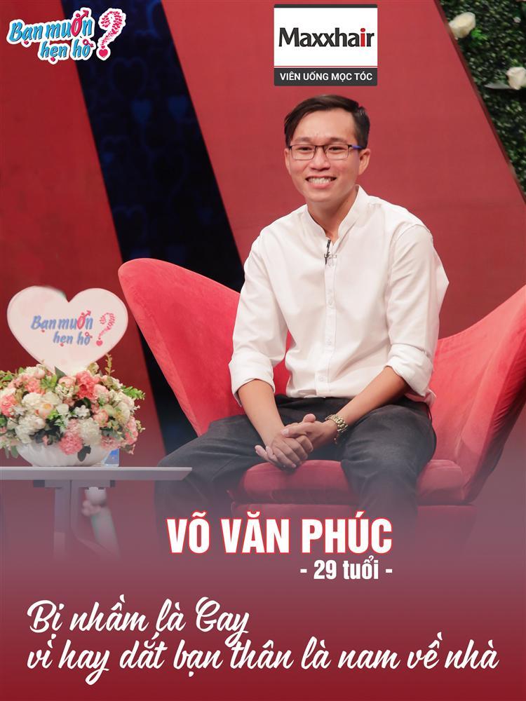 Bắt sóng câu chuyện, MC Quyền Linh quay sang “kiểm tra” liền “độ menly” của đàng trai là anh chàng Võ Văn Phúc. Anh chàng cũng thật thà chia sẻ từng bị gia đình nhận nhầm là gay khi hay dắt anh bạn thân về nhà chơi. Mặc dù Phúc luôn miệng khẳng định mình “men” nhưng tình cảnh khó xử trên cũng khiến Phượng e dè.