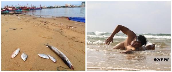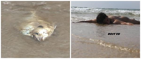Nhóm bạn trẻ thực hiện bộ ảnh này cũng khá thức thời khi tung đúng thời điểm sự kiện hàng loạt cá chết đang gây bão dư luận. Vẫn với 'mục đích cũ', bảo vệ môi trường, trả lại làn nước xanh, sạch cho tự nhiên, cặp nam nữ trong bộ ảnh đã vô tư khỏa thân và tạo dáng giống hệt những chú cá để nói lên 'khát vọng' của loài vật này.