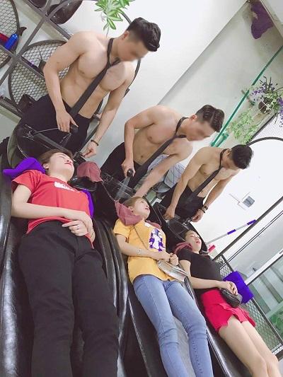 Mới đây, trên mạng xã hội chia sẻ clip về dàn soái ca cởi trần, khoe cơ bụng 6 múi đứng cắt tóc, gội đầu cho khách gây xôn xao. Theo tìm hiểu, đoạn clip này diễn ra tại một tiệm làm tóc trên địa bàn Thủ đô Hà Nội.