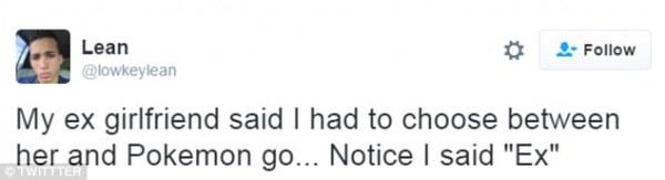 “Bạn gái cũ của tôi bắt tôi phải chọn giữa cô ấy và Pokémon GO… Chú ý là bạn gái CŨ nhé” .