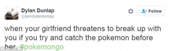 “Bạn gái tôi vừa dọa chia tay khi tôi đang cố bắt một con Pokémon ngay trước mặt cô ấy”.