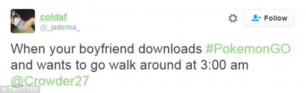 “Khi bạn trai chơi #PokémonGO và muốn đi dạo vào lúc 3 giờ sáng”.