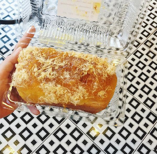 Món bánh ngọt phủ đầy chà bông (ruốc) mặn nhưng ăn vô cùng hợp. Ảnh: duyennguyennnn