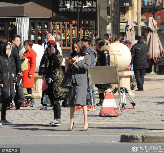 Dương Mịch vui vẻ nhắn tin trước khi bắt đầu quay hình