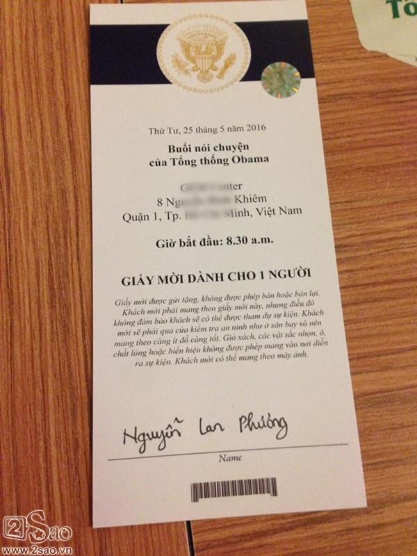 Ngay sau khi HH Đặng Thu Thảo chia sẻ về lời mời gặp mặt Tổng thống Obama, diễn viên Lan Phương cũng đã đăng lên trang cá nhân dòng trạng thái chia sẻ cảm xúc và thư mời cô đến tham dự buổi nói chuyện của tổng thống Obams.