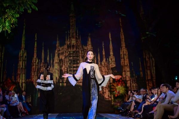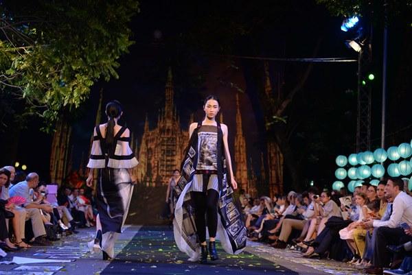 Tối qua 2/6, đã diễn ra sự kiện thời trang Những thiên thần Italy diễn ra trên đường phố Lê Phụng Hiểu, Hà Nội. Tận dụng mặt đường làm sàn catwalk, ban tổ chức sắp xếp những chiếc lồng đèn hai bên, phía đầu đường băng là tấm phông nền hình nhà thờ Duomo nổi danh với kiến trúc Gothic.