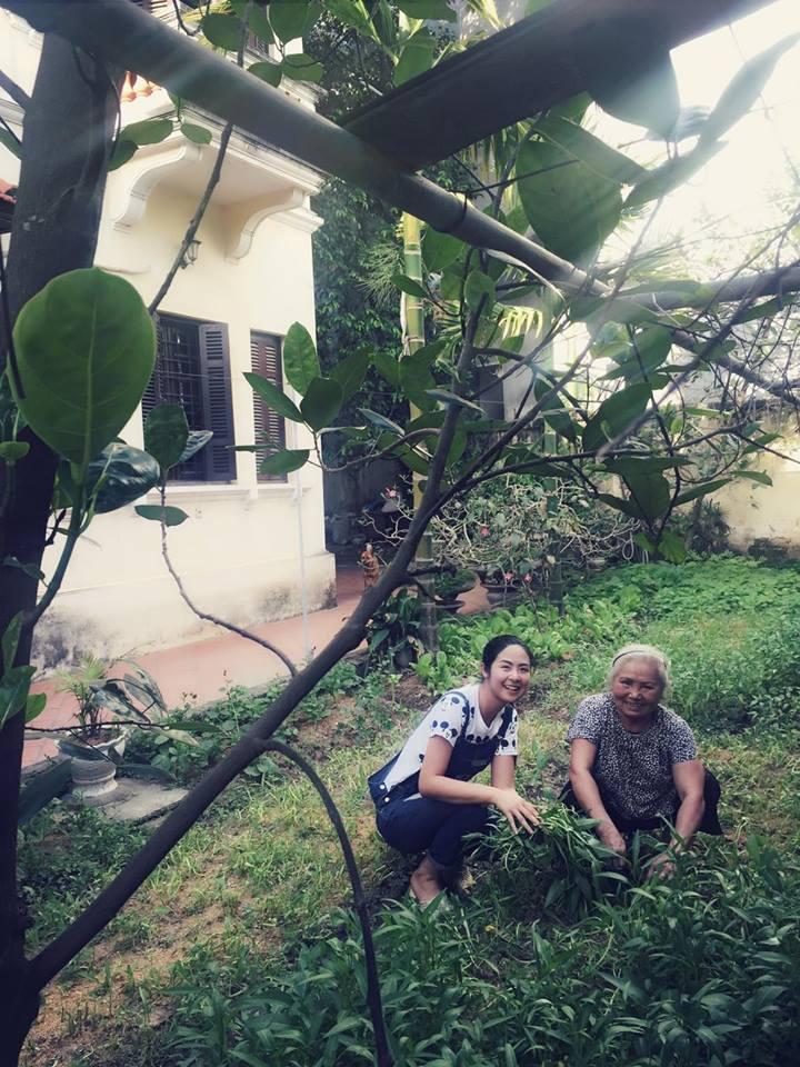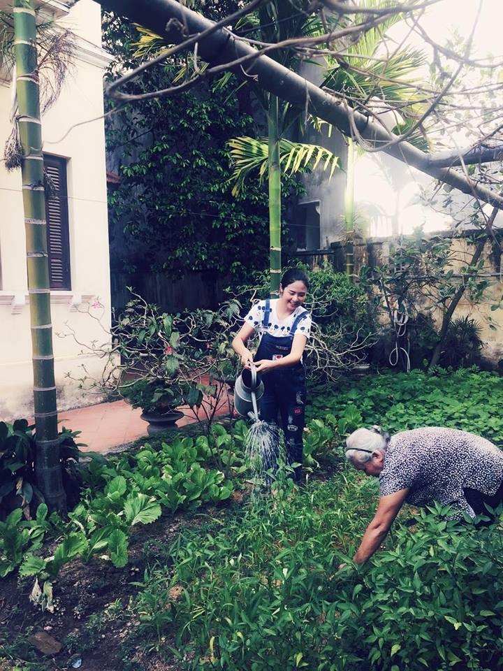 Ngọc Hân giản dị gần gũi hiện tại bên bà tại vườn rau mới được chia sẻ.