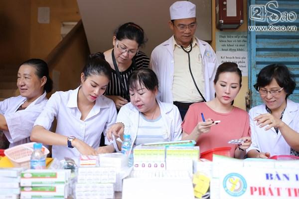 Trong trang phục giản dị, Hoa hậu Thu Hoài, Phạm Hương và Don Nguyễn cùng những thành viên trong đoàn đã tự tay bốc, xếp những thùng hàng, bao tải gạo,… và tận tay trao những phần quà, thuốc cho những người già, những gia đình có hoàn cảnh khó khăn tại nơi đây.