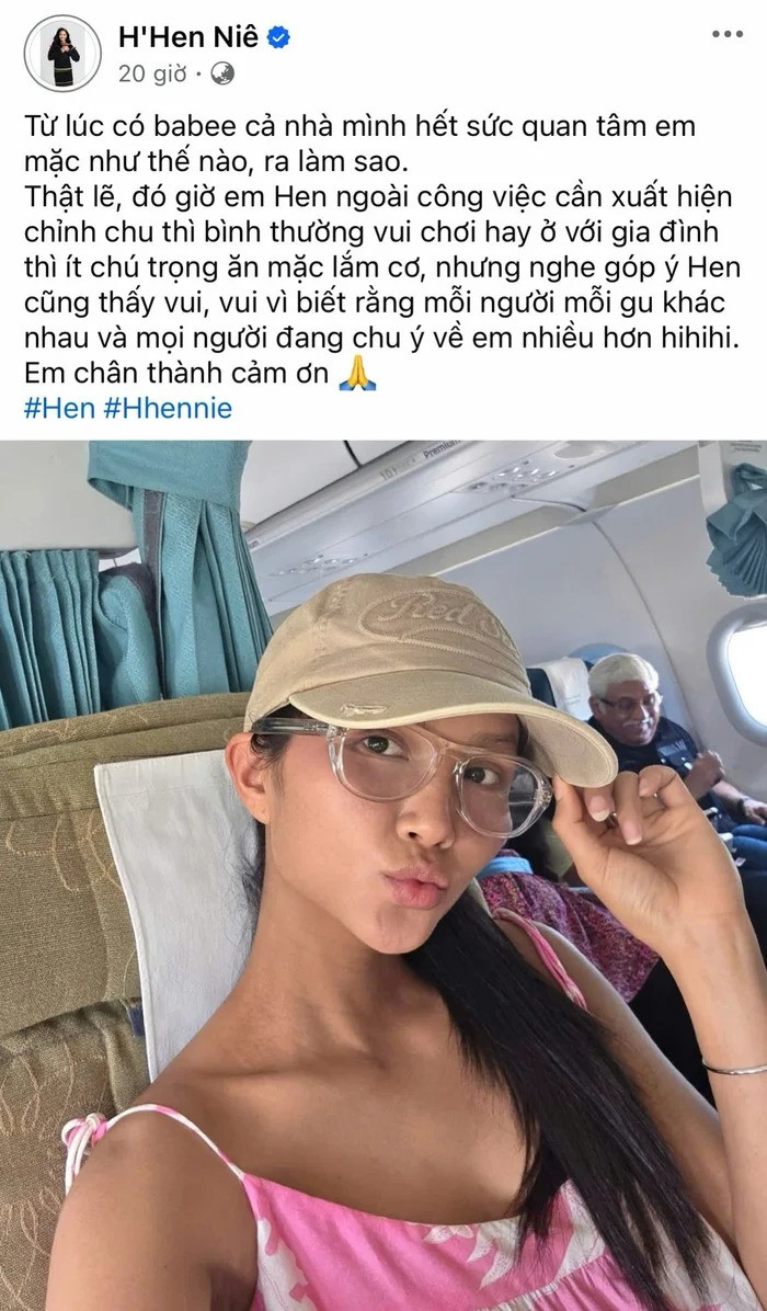 Không những thế, nàng hậu còn chia sẻ thêm: "Từ lúc có babe, cả nhà mình hết sức quan tâm em mặc như thế nào, ra làm sao. Thật ra, đó giờ em Hen ngoài lúc xuất hiện cho công việc cần chỉnh chu thì bình thường vui chơi hay ở với gia đình thì ít chú trọng ăn mặc lắm cơ nhưng nghe góp ý Hen cũng thấy vui, vui vì biết mỗi người mỗi gu và mọi người chú ý em nhiều hơn. Chân thành cảm ơn mọi người."