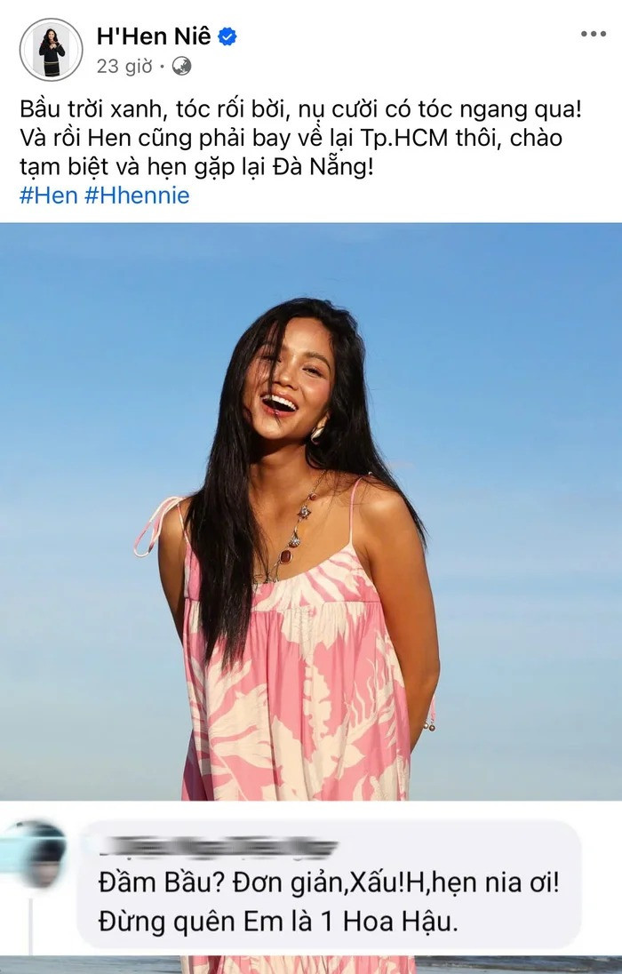 Mới đây, H'Hen Niê chia sẻ loạt ảnh diện đầm suông rộng màu hồng khi dạo biển, khoe nụ cười rạng rỡ và tinh thần vô cùng thoải mái.