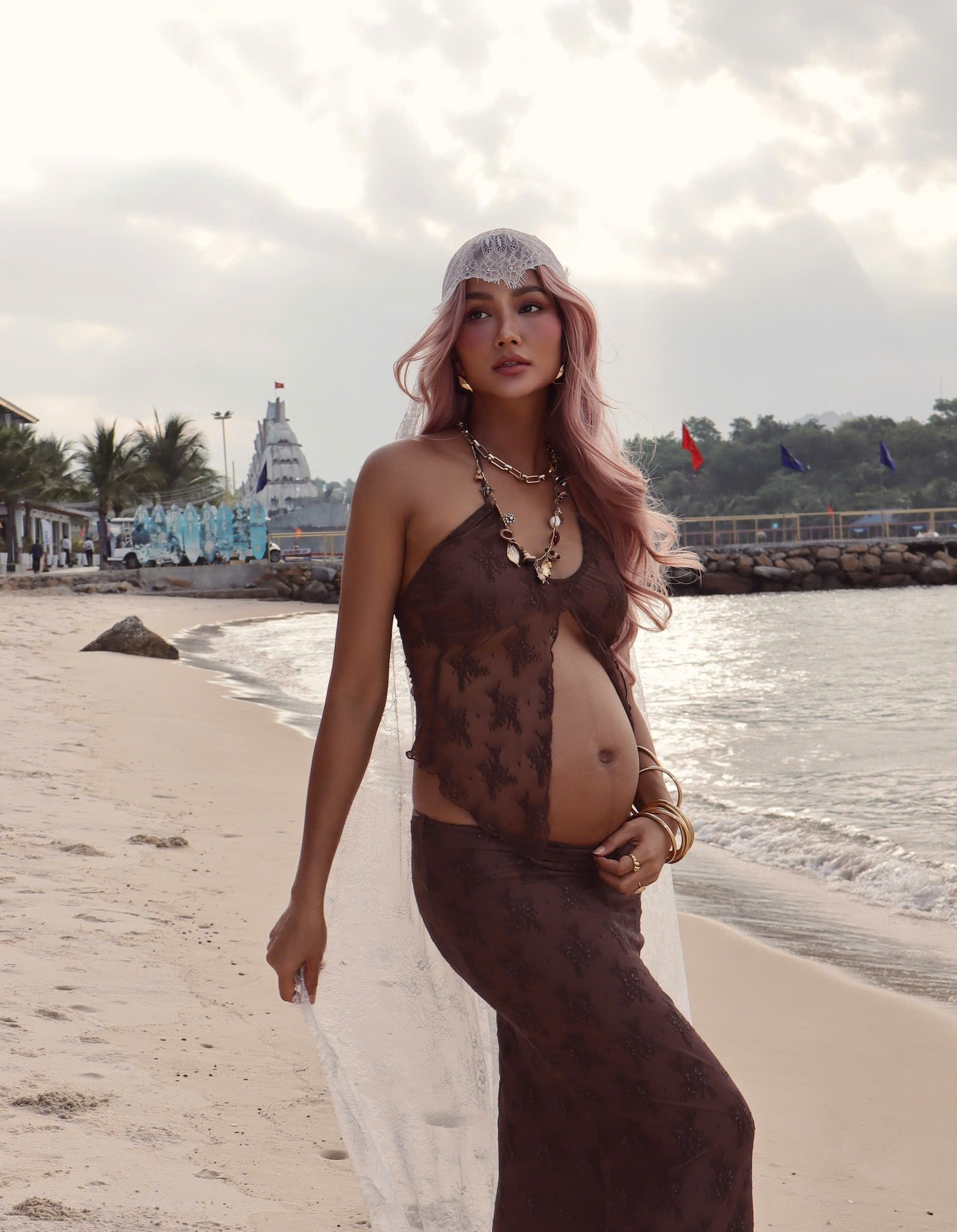 Mới đây, trên trang cá nhân, H'Hen Niê chia sẻ bộ ảnh thu hút sự chú ý. Theo đó, nàng hậu "ăn mày quá khứ" bộ ảnh bầu chụp trên bãi biển hồi bầu khoảng 5 tháng.
