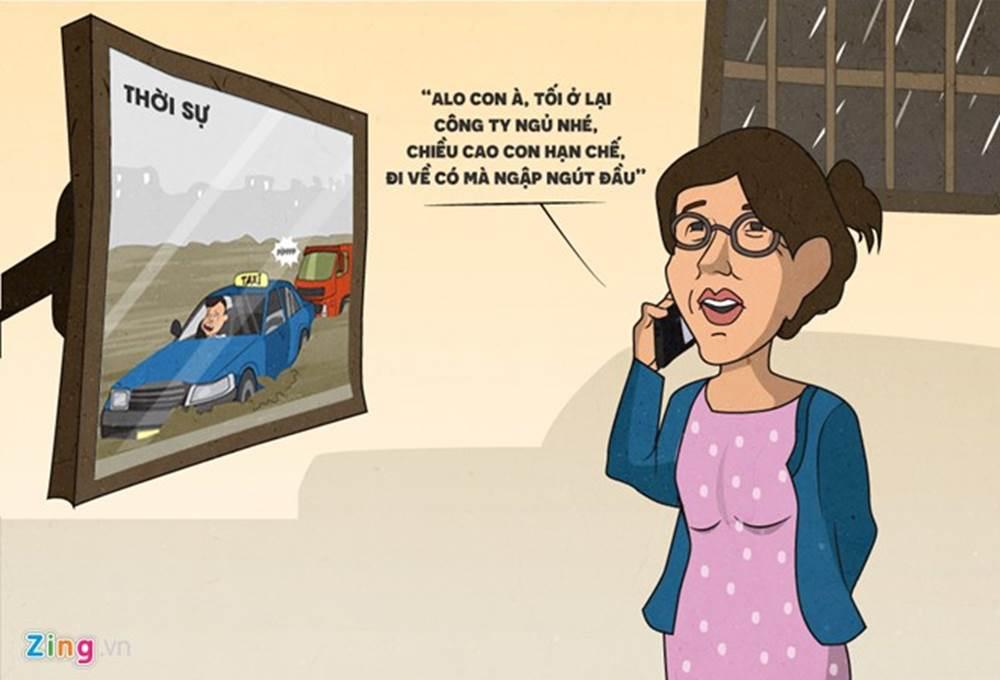 trạng ngập úng khiến giao thông vào giờ cao điểm thêm khó khăn, ùn tắc kéo dài.