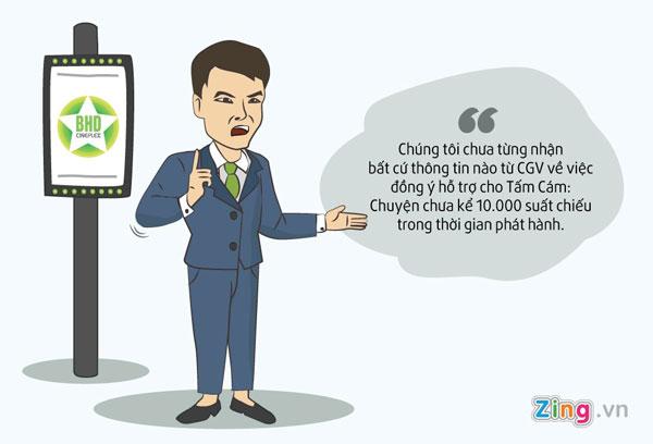 Ngay sau đó, đơn vị BHD cho biết mình chưa bao giờ nhận được thông tin là sẽ được ủng hộ 10.000 suất chiếu tại chuỗi cụm rạp CGV, đồng thời bác bỏ mọi chỉ trích từ phía đối phương. Họ đồng thời cho rằng những tranh cãi ngay trước giờ phim ra rạp sẽ gây ảnh hưởng bất lợi tới Tấm Cám: Chuyện chưa kể.