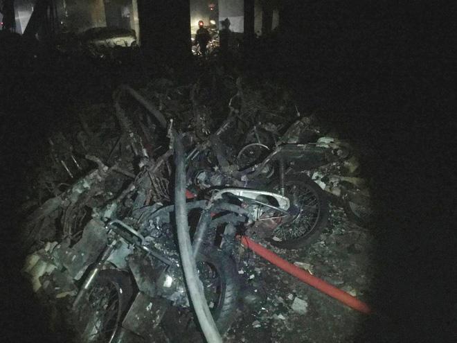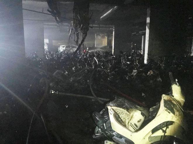 Toàn bộ xe máy, ô tô dưới hầm gửi xe bị thiêu rụi hoàn toàn