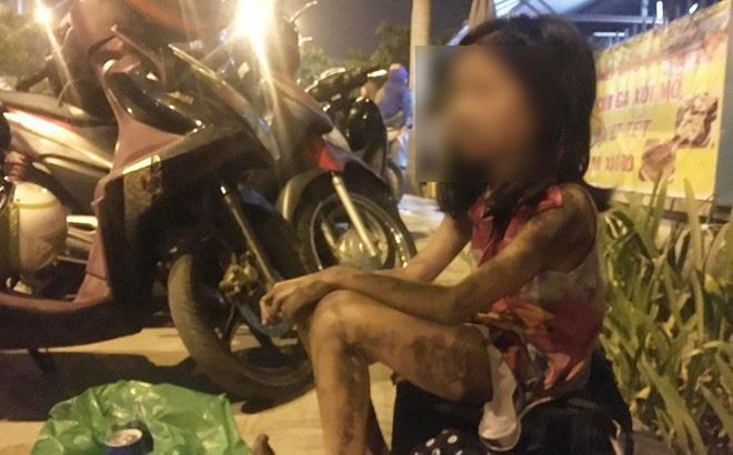 Bé gái người đầy khói đen bám ngồi dưới đường trong trạng thái hoảng sợ