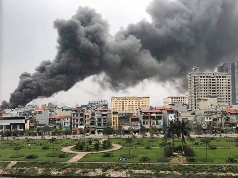 Toàn cảnh chợ Quang bị cháy chiều 31/3.
