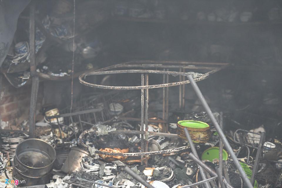 Bên trong các gian hàng, mọi đồ vật đều bị thiêu rụi, ngoại trừ đồ sành sứ, kim loại.