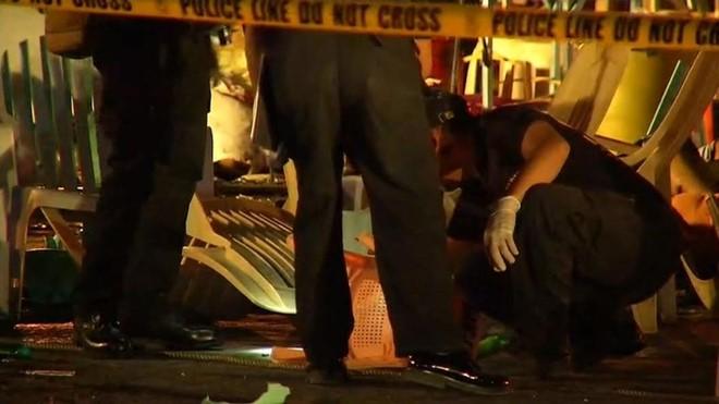 Máu các nạn nhân bao trùm khu vực chợ đêm Roxas, Davao. Ảnh: ABSCBN.