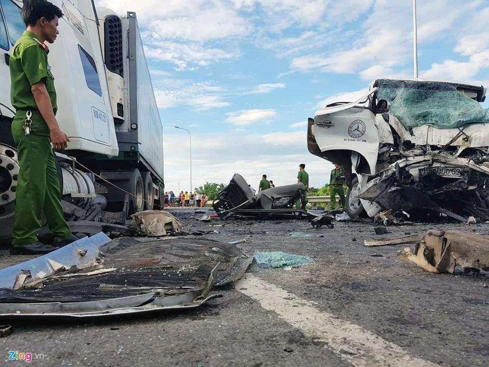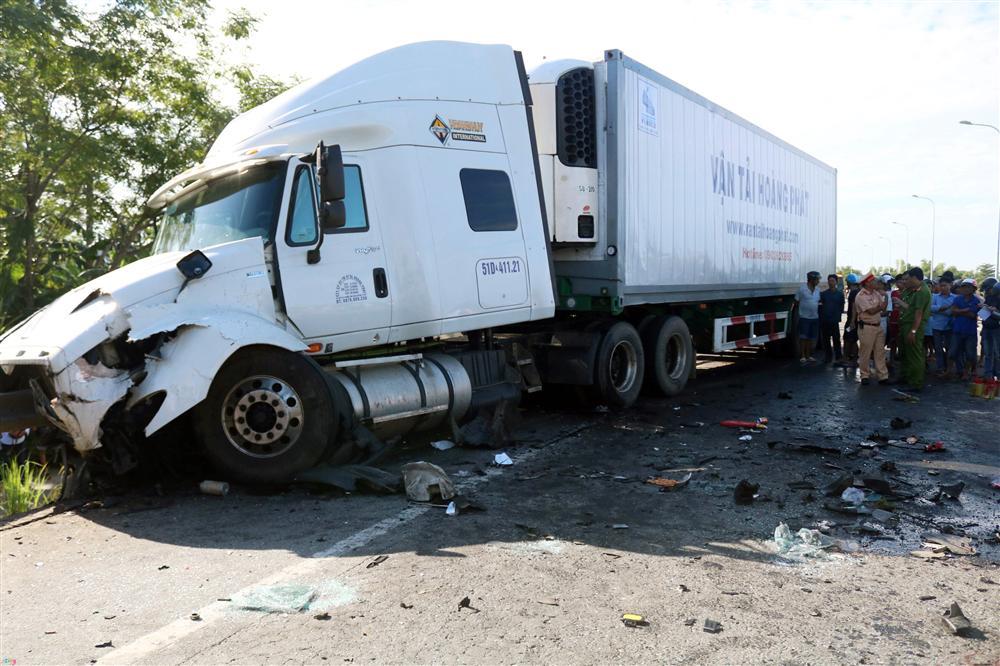 Vụ tai nạn khiến 10 người tử vong tại chỗ, 3 người tử vong trên đường đến bệnh viện. Tất cả nạn nhân đều trên ôtô khách, tài xế xe đầu kéo container bị thương nhẹ. Tại hiện trường, chiếc ôtô 16 chỗ bị biến dạng.