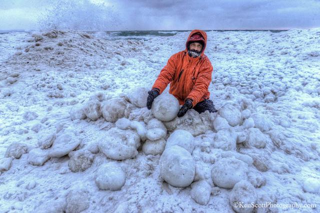Những "trái bóng băng" cũng xuất hiện quanh bờ Hồ Michigan, Mỹ.