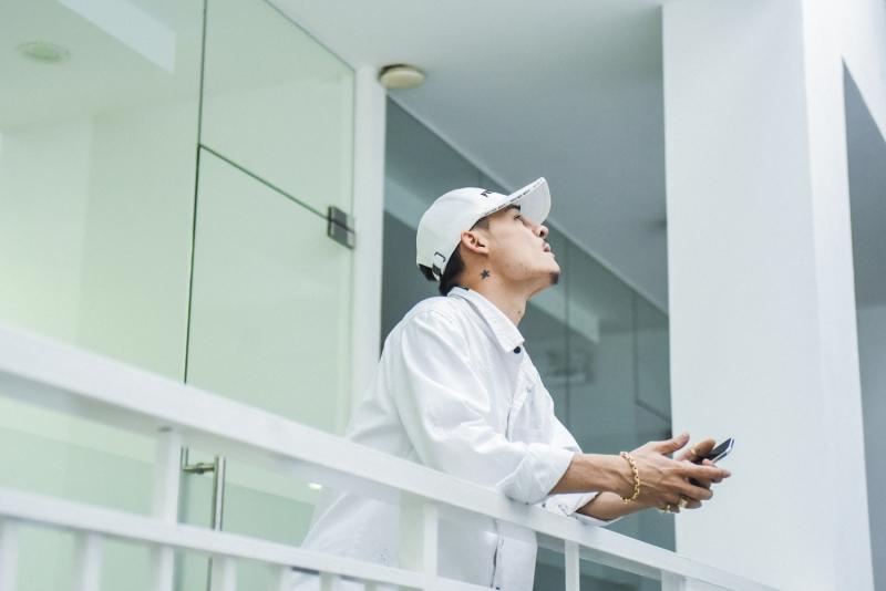 Nói thật, vì là đàn ông nên mình khá ngại việc tạo dáng, chụp hình, nên cứ đơn giản nhất có thể thôi. Vinh có stylist riêng lo cho mình về khâu tạo hình và hình ảnh, làm sao để đúng chất đàn ông, mạnh mẽ, hơi ngầu ngầu và bụi bặm nhất có thể.