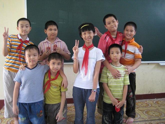 Hạnh Chi ngày còn học tiểu học (em mặc áo phông trắng). Ảnh: Gia đình cung cấp