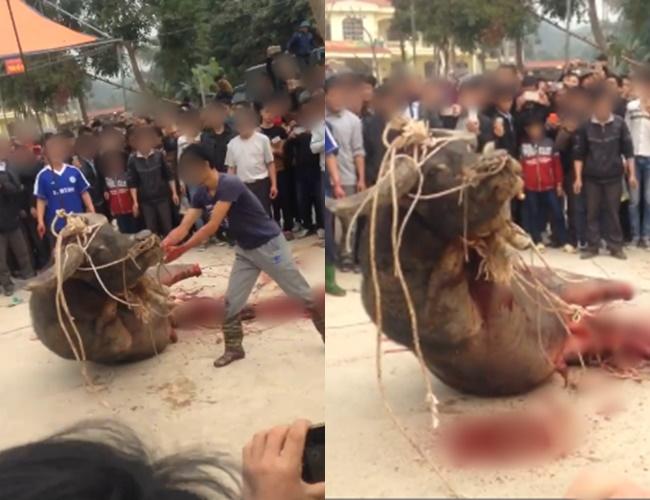 Mới đây, trên mạng xã hội xuất hiện đoạn clip ghi lại hình ảnh chú trâu bị giết hại dã man trước sự chứng kiến của nhiều người.