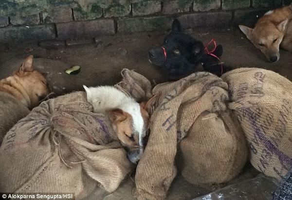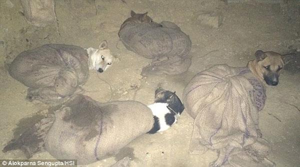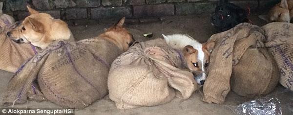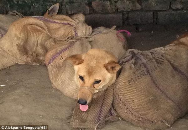 Những chú chó đáng thương bị trói chặt, buộc mõm bằng dây thừng và không hề được ăn uống cho đến khi bị giết chết.