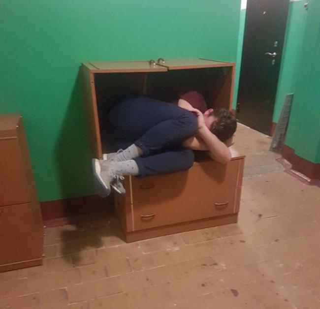Chắc là cuối tuần "ăn chơi" quên ngủ luôn đây mà.