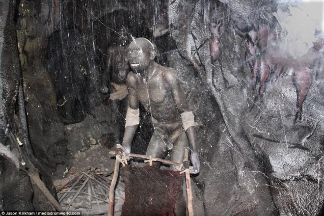 Một số tượng, như tượng người tiền sử, phủ lớp mạng nhện dày.