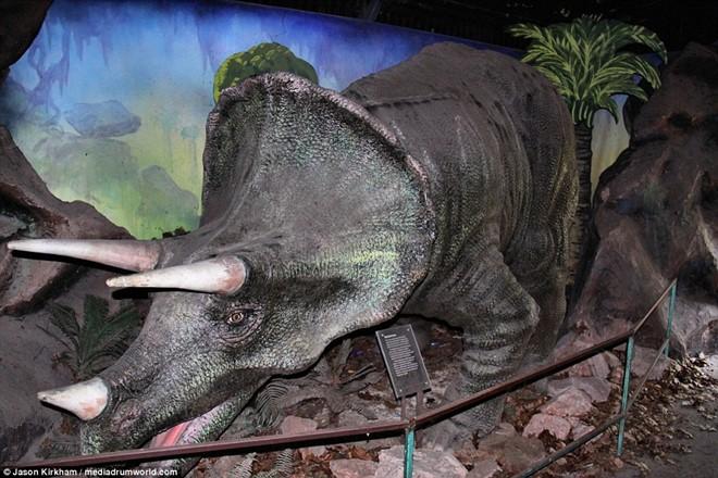 Trong lúc khám phá nơi bị bỏ hoang này, nhiếp ảnh gia 44 tuổi đã thấy tượng T-Rex, voi mammoth và tượng Brontosaurus.