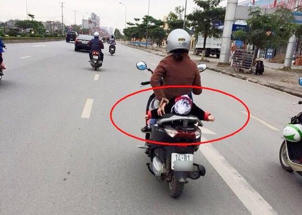Hình ảnh mẹ đèo con nhỏ bất cẩn dưới đây không phải là trường hợp cá biệt mà nó xuất hiện khá thường xuyên trên đường phố Việt Nam. Các bậc phụ huynh dường như đã quá chủ quan, nếu trên đường xảy ra bất kỳ một tình huống nào mà người lớn không kịp trở tay thì đứa trẻ hoàn toàn sẽ rơi vào tình cảnh nguy hiểm.