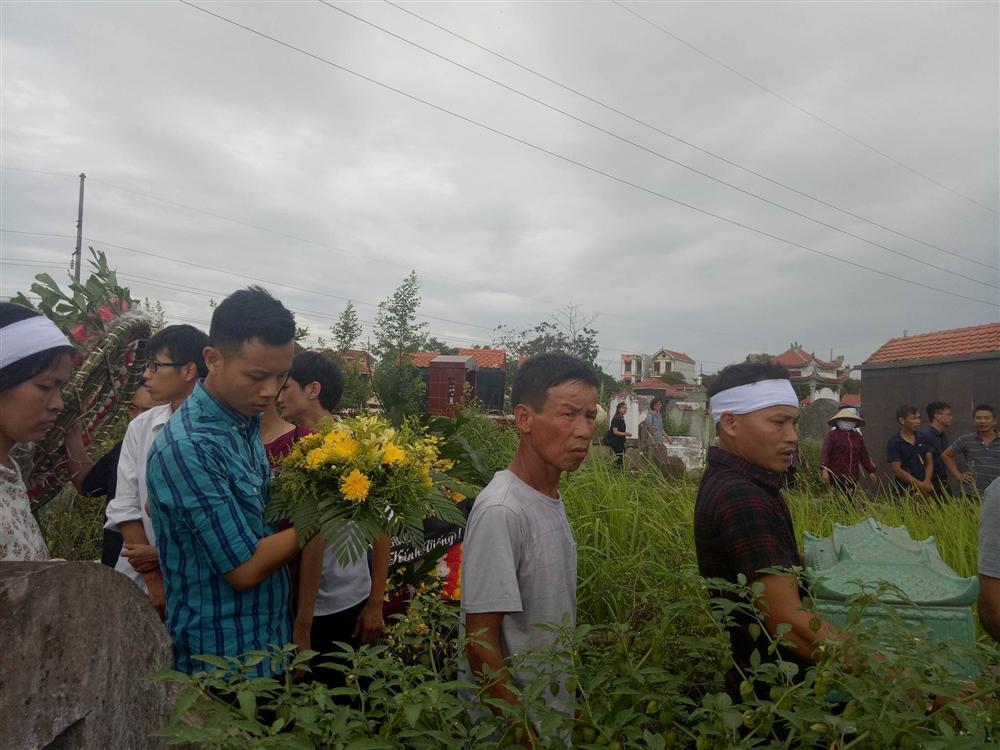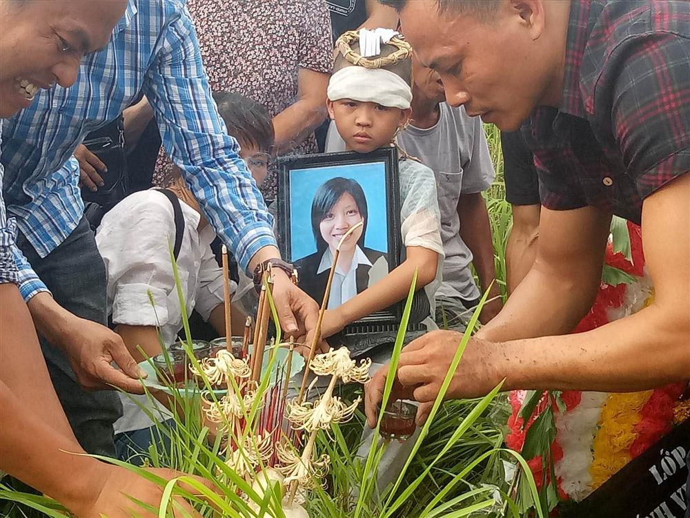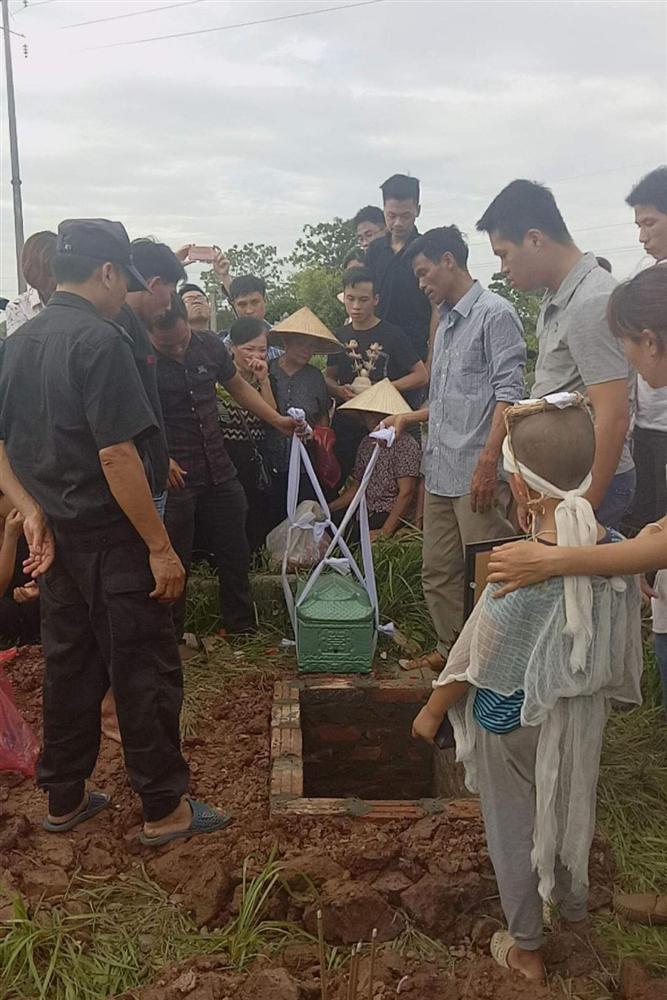 Khi hạ huyệt, gia đình vì quá đau thương, bối rối nên cũng chẳng nhớ mua dây để hạ tro cốt em xuống. Người thân phải ngả khăn tang trên đầu nối thành dây để bọc lấy thân em, coi như lần đưa tiễn cuối cùng...