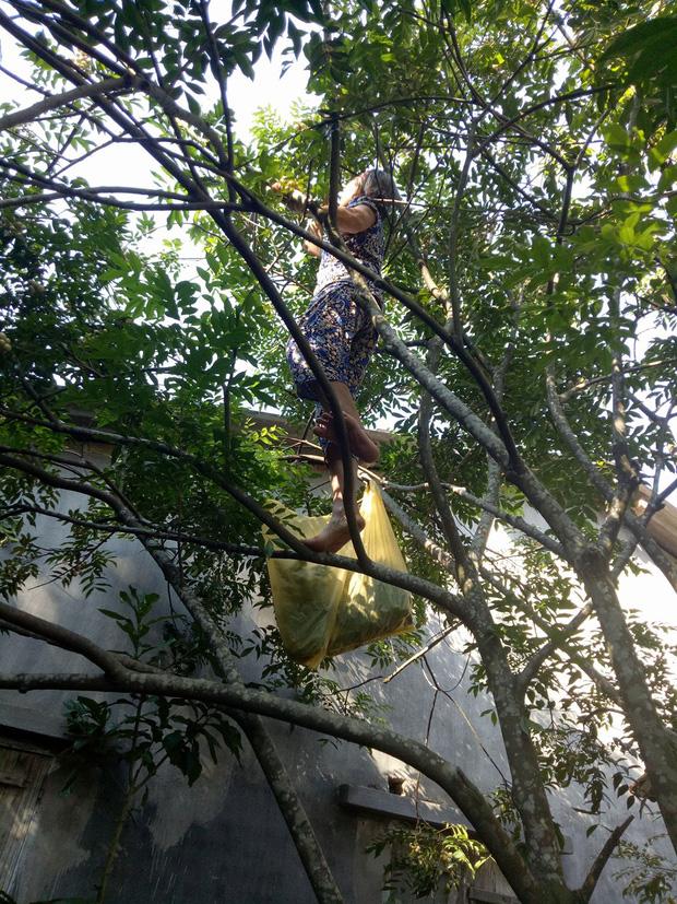 Cuối cùng, bà quyết định tự leo lên thu hoạch. Đăng tải bức ảnh này mình muốn khoe với mọi người bà mình năm nay 75 tuổi nhưng vẫn còn khỏe lắm.