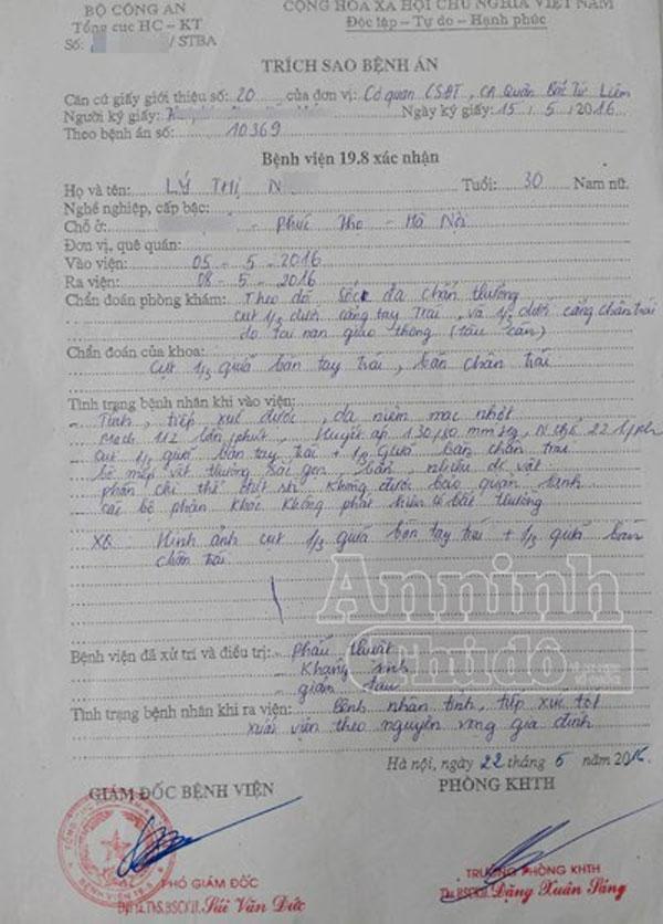 Trích sao bệnh án của chị Lý Thị N. tại Bệnh viện 19-8 Bộ Công an