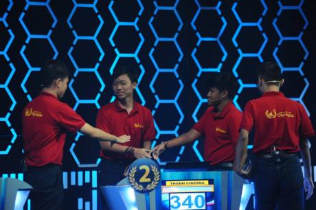 Chàng trai trường THPT quốc học Huế cho biết chỉ cố gắng hết sức để đạt số điểm cao nhất. "Giây phút lo lắng nhất của em là khi bấm chuông trả lời từ khóa của phần Vượt chướng ngại vật, vì đây là phần yếu nhất của em. Khi Tiến Tùng trả lời sai, em rất sợ cũng bị loại khỏi phần thi như vậy, may mắn sao lại trả lời đúng", Hồ Đức Thanh Chương chia sẻ.