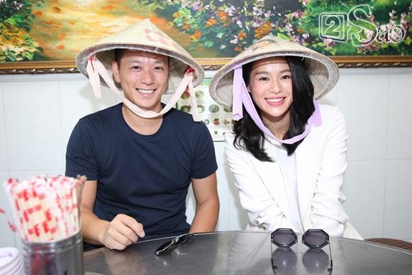 Cặp đôi diện đồ đơn giản. Hồ Hạnh Nhi luôn tươi cười, còn doanh nhân Philip Lee bảnh bao với phong cách "lạnh lùng".
