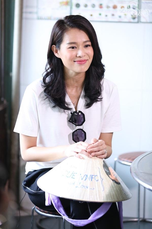 Nữ diễn viên vẫy tay chào khi được Hoa hậu Thu Hoài nói có truyền thông ra đón cô.