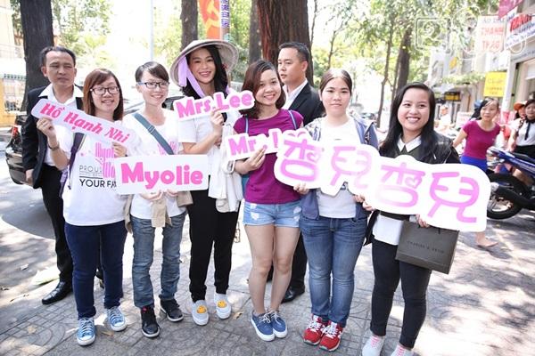 Khá đông fan của Hồ Hạnh Nhi đã có mặt đón thần tượng. Tất cả vỡ oà khi được nhìn tận mắt, sờ tận tay nữ diễn viên mà mình hâm mộ.