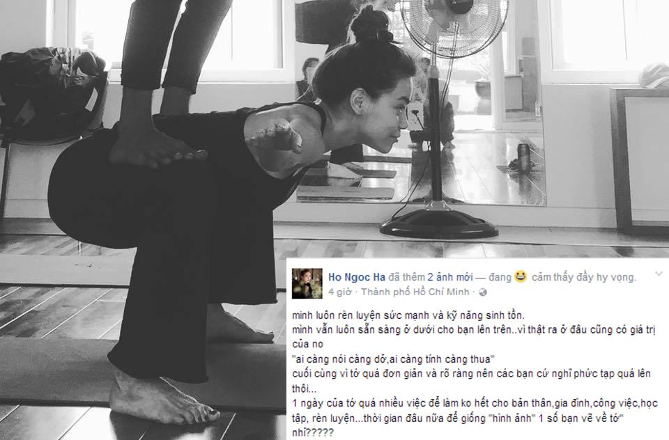 "Vì tớ quá đơn giản và rõ ràng nên các bạn cứ nghĩ phức tạp quá lên thôi. Một ngày của tớ quá nhiều việc để làm không hết cho bản thân, gia đình, công việc, học tập, rèn luyện... thời gian đâu nữa để giống 'hình ảnh' một số bạn vẽ về tớ nhỉ?", Hồ Ngọc Hà khẳng định.