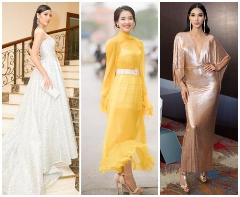 Cùng với loạt đầm dạ hội đơn sắc giúp mỹ nhân Việt gây ấn tượng thì những chiếc đầm ánh kim hay đính sequin tiếp tục "chiếm sóng" thảm đỏ 2018. Không chỉ giúp chủ nhân nổi bật trong bữa tiệc bởi chất liệu bắt sáng, những chiếc đầm lấp lánh ôm sát còn khai thác triệt để lợi thế hình thể của các người đẹp.
