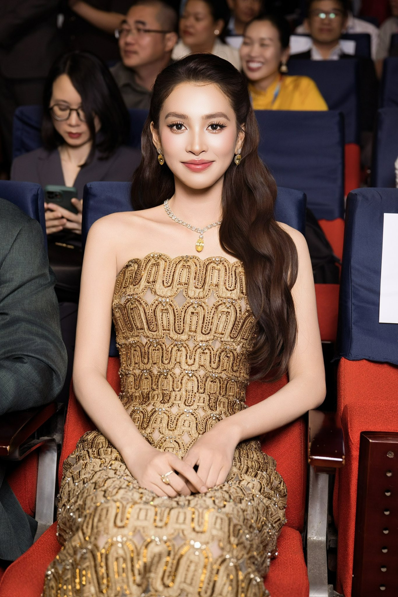 Hoa hậu Lương Thùy Linh, Tiểu Vy sang chảnh với đầm dạ hội tại Liên hoan phim Việt NamTrong khi Lương Thùy Linh chọn đầm trắng cầu kỳ, thì Trần Tiểu Vy sang chảnh với thiết kế màu đồng, còn Đoàn Thiên Ân xuất hiện bồng bềnh trong mẫu dạ hội xanh navy tại Lễ bế mạc Liên hoan phim Việt Nam lần thứ 24.